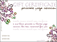 Gift certificates for private yoga sessions! Give some love to friends, family, or employees; OR put these gift certificates on your own wish list! Gift certificates are at a slight discount from regular sessions, but still valid for a 60 minute session.